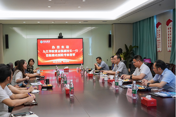 雷志强一行与赣北医院相关负责人开展了座谈。雷志强表示,感谢余翠林董事长对母校的回馈,赣北医院作为地区内重要的医疗机构,拥有丰富的临床资源和实践经验,校院双方的合作将促进医学科研成果的转化应用,具有广阔的前景。